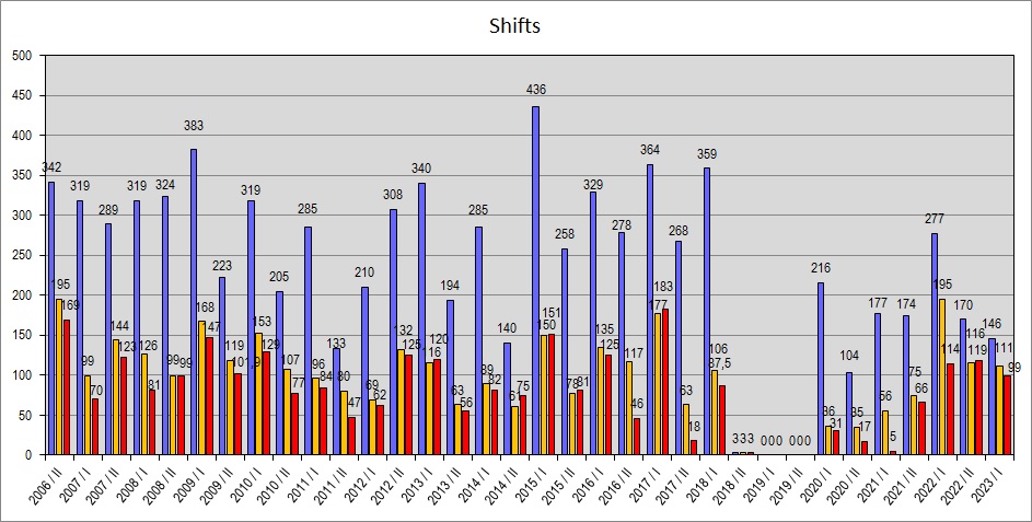 Zgłoszone zapotrzebowanie na shifty w złożonych projektach, w których brali udział